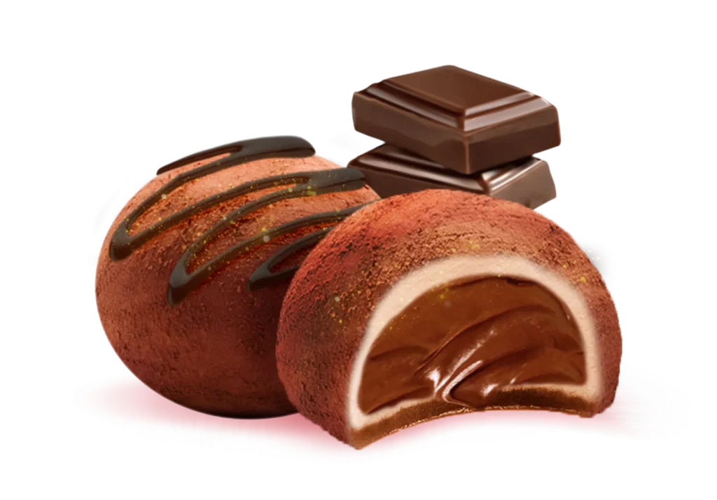 Silky smooth Belgian milk chocolate ganache,wrapped in soft, chewy mochi. Finished with adusting of rich cocoa powder.